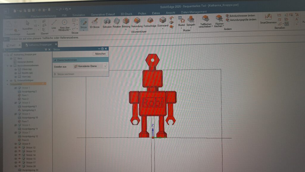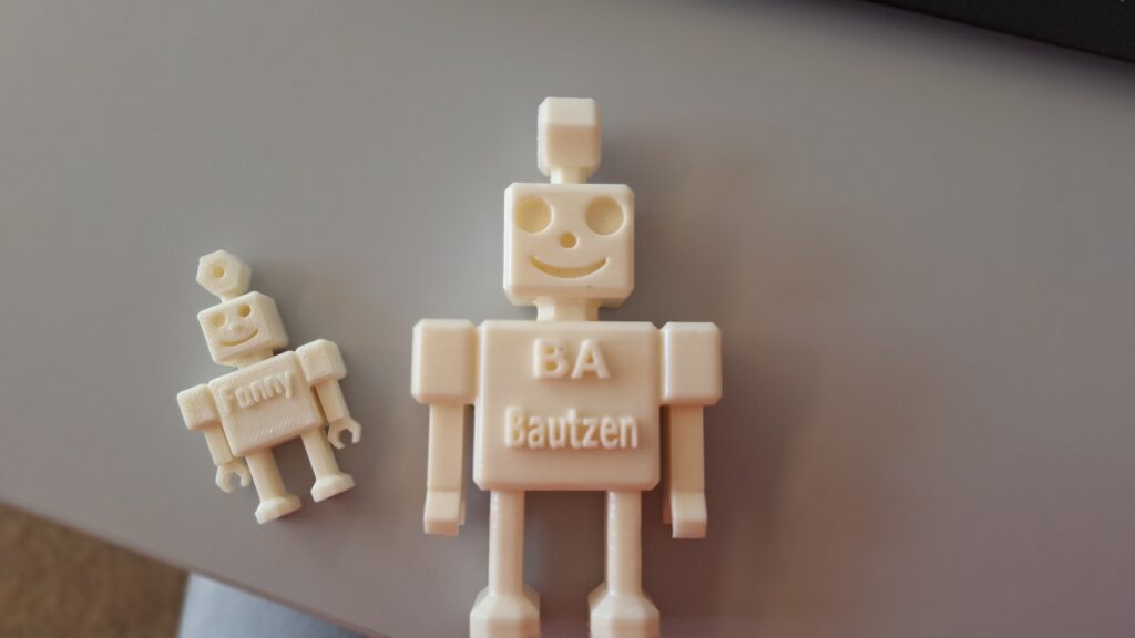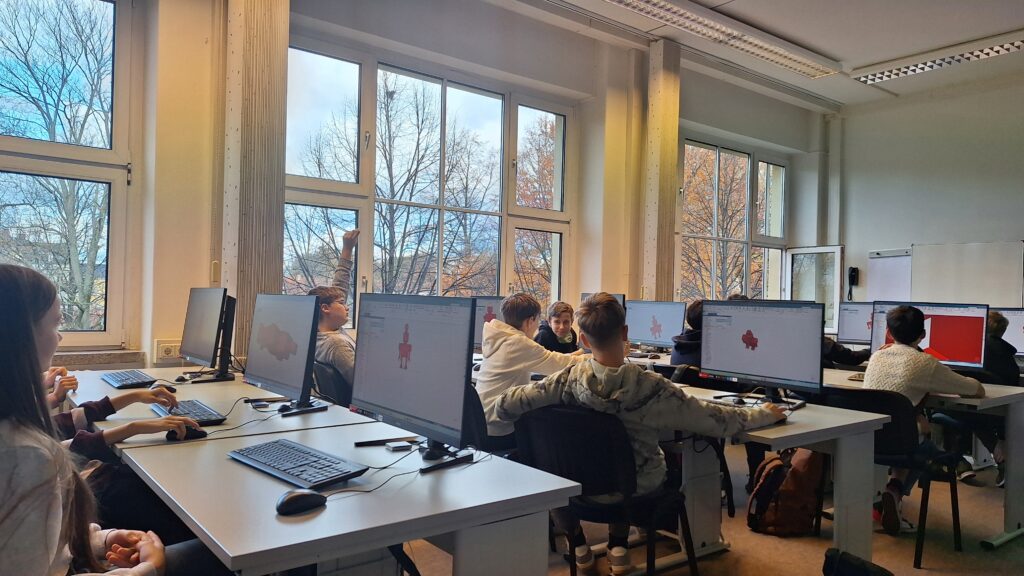 Im nächsten Schritt durften wir einen Roboter am PC via App mit Frau Prof. Gubsch konstruieren. Jeder Schüler durfte ihn danach individualisieren und persönlich gestalten. In den nächsten Tagen erhalten wir diesen als Schlüsselanhänger zum Andenken.