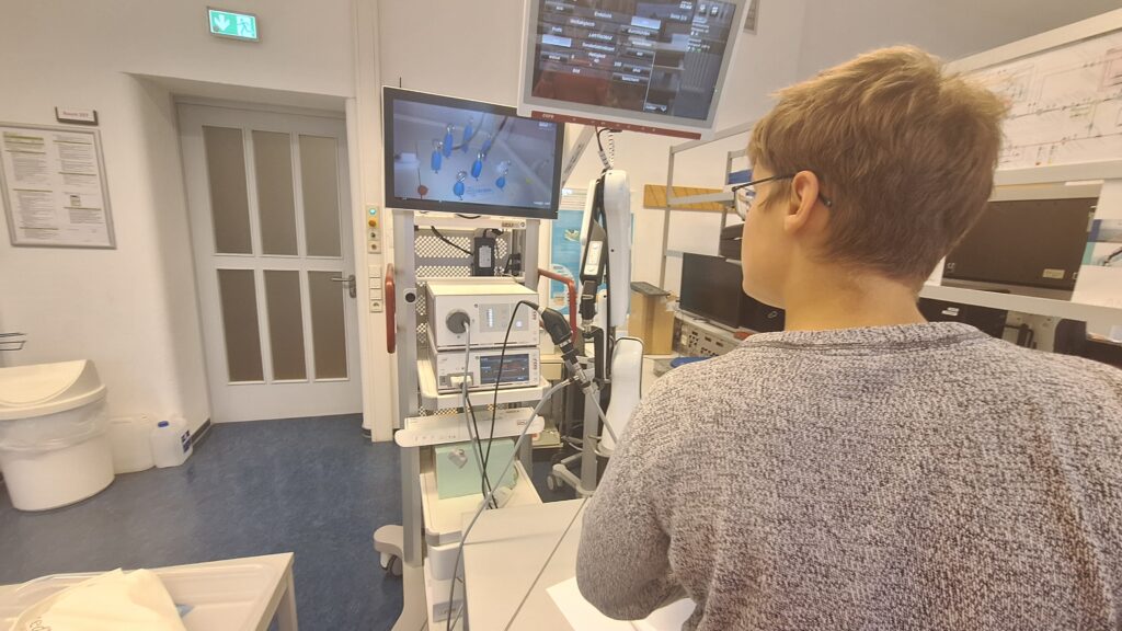 Als letzte Station durften wir in der Medizintechnik bei Herrn Abdel-Haq operieren und andere medizinische Geräte bei uns selbst ausprobieren.
